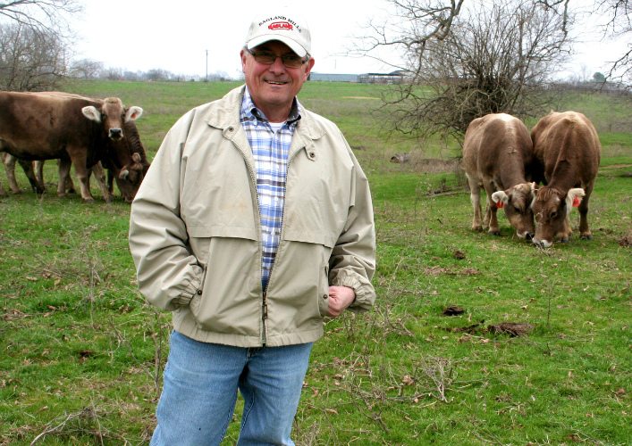 Editors Note: As you can see from the cattle in the background, Dwight has a very nice Braunvieh herd (some would argue they are better looking than he is). Also, I will tell you that, at one time, his family had the largest herd of Brown Swiss in the United States (sounds like a lot of work to me!). Dwight has bought a herd sire, and a VERY fancy heifer from us and has also partnered on some of our top herd sires. I can tell you….this guy knows cattle